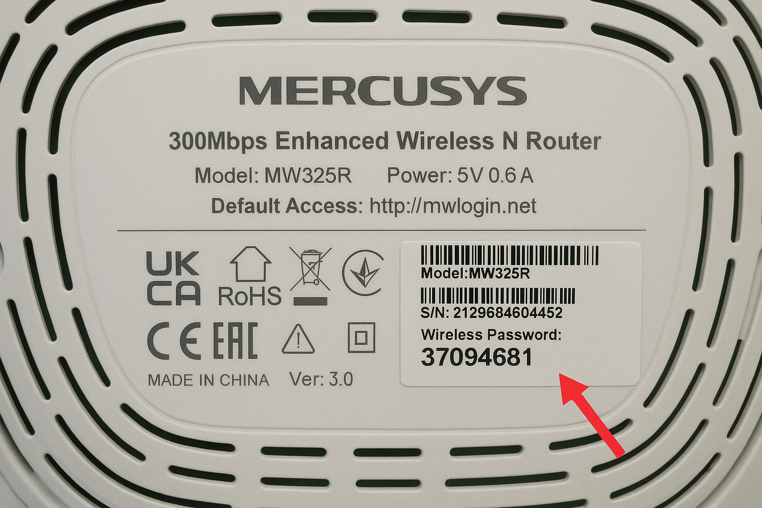 - Al reiniciarse, aparecerá una red con nombre MERCUSYS_XX. Conectate a esa red. La contraseña está en la etiqueta debajo del router, después de la palabra PASSWORD o PIN.