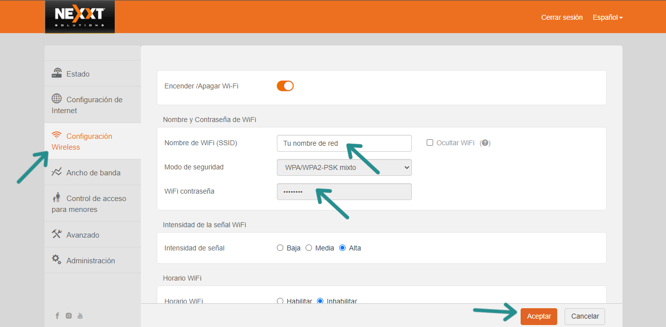 Si deseás actualizar el nombre o contraseña de tu red WiFi, seguí estos pasos: